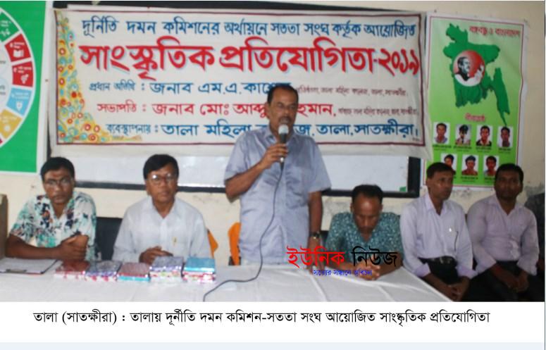 নিজস্ব প্রতিনিধি : দূর্নীতি দমন কমিশনের অর্থায়নে সততা সংঘ আয়োজিত এক মনোজ্ঞ সাংষ্কৃতিক প্রতিযোগিতা বৃহস্পিতবার সকালে তালা মহিলা কলেজের হলরুমে অনুষ্ঠিত হয়। কলেজের অধ্যক্ষ আব্দুর রহমানের সভাপতিত্বে প্রতিযোগিতায় প্রধান অতিথি হিসেবে উপস্থিত ছিলেন, কলেজটির প্রতিষ্ঠাতা সভাপতি এমএ কাশেম। উপস্থিত ছিলেন কলেজের উপাধ্যক্ষ শফিকুল ইসলাম,সহকারী অধ্যাপক আবু হাসান,হরেন্দ্র নাথ মন্ডল,প্রভাষক কণা বিশ্বাস,মাসুদুজ্জামান,ভবতোষ মন্ডল,নাজিম উদ্দীন,সুতপা রাহা টুম্পা প্রমূখ। শেষে অংশগ্রহনকারী ছাত্রীদের মাঝে পুরষ্কার বিতরণ করা হয়। অনুষ্ঠানটির সঞ্চালনায় ছিলেন কলেজের সহকারী অধ্যাপক আবু হাসান।