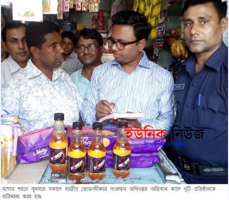 মোঃ সোহেল বলেন, বাজার তদারকি সংস্থা অভিযান পরিচালনা কালে দেখতে পান ছাবা এন্টার প্রাইজ নামে একটি ডিপার্টমেন্টাল ষ্টোরে নোংরা পরিবেশ, সেখান মোয়াদোত্তীর্ণ বিভন্নি কোমলপানির এবং বিভিন্ন বিষ্কুট সংরক্ষন করে তা বাজার জাত করছে। এসময় প্রতিষ্টানটির মালিক মোঃ সেলিমকে ২০০৯ সালের ভোক্তাধীকার সংরক্ষন আইনের ৫১ ধারায় দশ হাজার টাকা জরিমানা করে তা আদায় করেন। এবং পাশেই সুন্দরবন বেকারিতে দেখতে পান মেয়াদোত্তীর্ণ বিভিন্ন চকলেট ও দই সংরক্ষন করে তা বাজার জাত করছে। এসময় প্রতিষ্টানটির মালিক মোঃ সবুজকে একই ধারায় পাঁচ হাজার টাকা জরিমানা করে তা আদায় করেন।