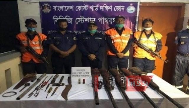 কোস্টগার্ড পাথরঘাটা স্টেশন কমান্ডার জানান, আবারও সমুদ্রে দস্যুতা করতে একটি কুচক্রি মহল জলদস্যু বাহিনী তৈরি ও বাহিনী তৈরিতে উৎসুকদের কাছে অস্ত্র তৈরি করে সরবরাহ করছে। এমন গোপন সংবাদের ভিত্তিতে সুন্দরবনের পূর্বাংশে বেলা ১২টার পর অভিযান শুরু করা হয়। একপর্যায়ে মাঝের চর নামক এলাকায় অস্ত্র তৈরির আস্তানা পাওয়া যায়। পরে রাত ৮ টার দিকে আস্তানায় অভিযান শুরু করা হয়।