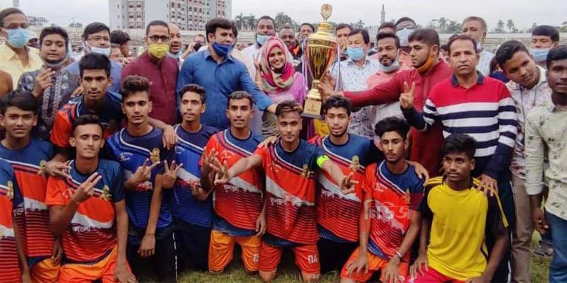 তাপস কুমার বিশ্বাস, ফুলতলা (খুলনা): খুলনা জেলা বঙ্গবন্ধু অনুর্ধ্ব ১৭ গোল্ডকাপ ফুটবল টুর্নামেন্ট-২০২১ ফাইনালে ফুলতলা উপজেলা একাদশ চ্যাম্পিয়ন ও দাকোপ উপজেলা একাদশ রানার্স আপ হয়েছে। শুক্রবার বিকালে খুলনা জেলা ষ্টেডিয়ামে অনুষ্ঠিত এ খেলায় দাকোপ উপজেলা একাদশকে ৪-২ গোলের ব্যবধানে পরাজিত করে ফুলতলা উপজেলা একাদশ খুলনা জেলা পর্যায়ে হ্যাট্রিক চ্যাম্পিয়নশীপ অর্জন করল। বিজয়ী দলের পক্ষে সুজন ও তাসনিম ২টি করে গোল করে।