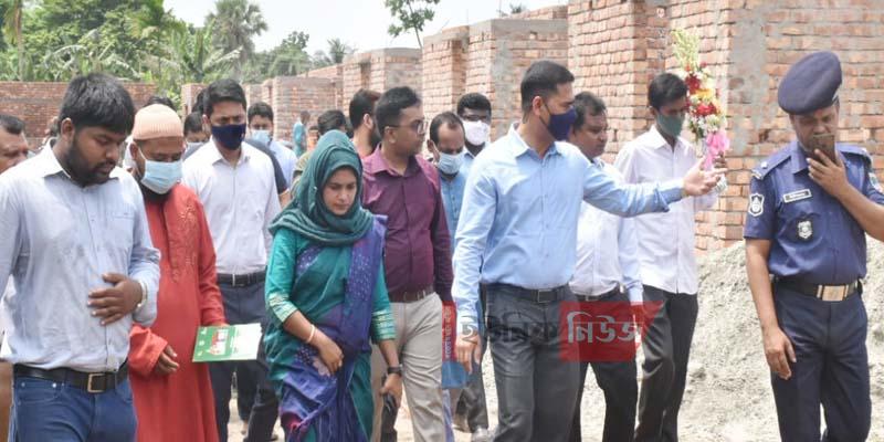 তাপস কুমার বিশ্বাস, ফুলতলা (খুলনা)// ফুলতলায় প্রধানমন্ত্রীর উপহার হিসেবে দেওয়া নির্মানাধীন ঘর পরিদর্শন করেছেন খুলনা জেলা প্রশাসক মোঃ মনিরুজ্জামান তালুকদার। গতকাল সোমবার সকাল সাড়ে ১০টায় উপজেলার দক্ষিণডিহি গ্রামে নির্মানাধীন ঘরগুলো পরিদর্শন করেন। এ সময় উপস্থিত ছিলেন উপজেলা পরিষদের চেয়ারম্যান আলহাজ¦ শেখ আকরাম হোসেন, উপজেলা নির্বাহী অফিসার সাদিয়া আফরিন, ওসি মোঃ ইলিয়াজ তালুকদার, ইউপি চেয়ারম্যান শেখ মনিরুল ইসলাম, শরীফ মোহাম্মদ ভুইয়া শিপলু, শেখ আবুল বাশার, উপজেলা প্রকৌশলী মোঃ ইয়াছিন আরাফাত, কৃষি কর্মকর্তা মোঃ ইনসাদ ইবনে আমিন, উপজেলা আওয়ামীলীগের ভারপ্রাপ্ত সাধারণ সম্পাদক মৃনাল হাজরা, সিনিয়র মৎস্য কর্মকর্তা রনজিৎ কুমার, যুব উন্নয়ন কর্মকর্তা এস এম কামরুজ্জামান, প্রকল্প বাস্তবায়ন কর্মকর্তা মোঃ রফিকুল ইসলাম, বীজ কর্মকর্তা মোঃ আনোয়ার হোসেন, আইসিটি কর্মকর্তা পুষ্পেন্দু দাস প্রমুখ। উপজেলা প্রকল্প বাস্তবায়ন কর্মকর্তার কার্যালয় সূত্রে জানা গেছে, প্রধানমন্ত্রীর উপহার হিসেবে দেওয়া তৃতীয় পর্যায়ে ৭৭টি ঘর নির্মান হবে। এই ঘরগুলো নির্মান কাজ প্রায় শেষ পর্যায়ে।