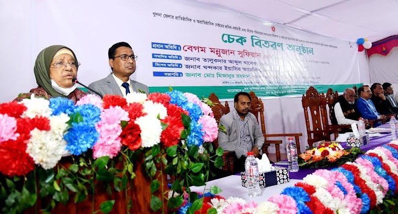 ইউনিক ডেস্ক : শ্রম ও কর্মসংস্থান মন্ত্রণালয়ের অধীন বাংলাদেশ শ্রমিক কল্যাণ ফাউন্ডেশন তহবিল থেকে খুলনা জেলার তিনটি উপজেলার ও তিনটি থানার ২শ’ ৭২ শ্রমিককে প্রায় এক কোটি ৪০ লাখ টাকা আর্থিক সহায়তা প্রদান করা হয়েছে। বুধবার বিকেলে নগরীর খালিশপুরে শ্রম কল্যাণ কেন্দ্রে চেক বিতরণ অনুষ্ঠানে শ্রম ও কর্মসংস্থান প্রতিমন্ত্রী বেগম মন্নুজান সুফিয়ান প্রধান অতিথি থেকে প্রাতিষ্ঠানিক-অপ্রাতিষ্ঠানিক খাতের এসকল শ্রমিক ও তাদের সন্তান-পরিজনদের হাতে আর্থিক সহায়তার চেক তুলে দেন। বিশেষ অতিথি ছিলেন সিটি মেয়র তালুকদার আব্দুল খালেক।