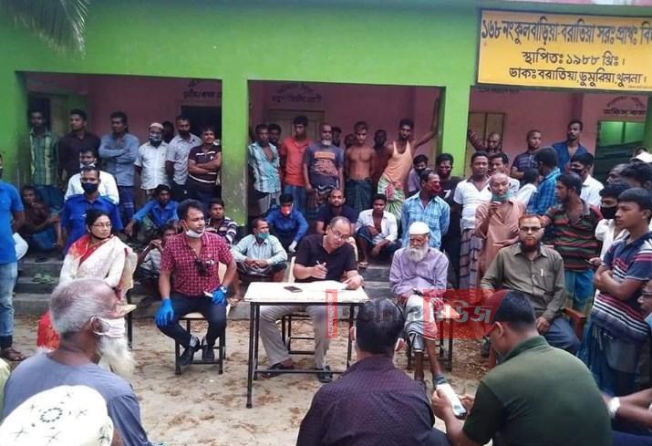 স্থানীয়রা জানায়, মহামারী নোবেল করনা ভাইরাস নিয়ে সরকার প্রধান থেকে শুরু করে সমগ্র দেশের মানুষ উৎকন্ঠিত। করোনা নিয়ন্ত্রনে সভাসমাবেশ ও গনজমায়েত বন্ধ এবং সামাজিক দুরত্ব বজায় রাখতে আইন-শৃঙ্খলা বাহিনী ও প্রশাসনসহ সবাই চেষ্টা করছেন। প্রশাসনের সকল পর্যায় থেকে মানুষকে ঘরে অবস্থান করা এবং দেশের মসজিদ মন্দির সহ সকল উপাসনালয়ে যখন লোকজনের উপস্থিতি সীমিত করা হয়েছে। তখন গত শনিবার সন্ধ্যায় ডুমুরিয়ার আটলিয়া ইউনিয়নের কুলটিয়া এলাকার নুরুল ইসলামের মৎস্য ঘের থেকে মাছ চুরির ঘটনা ঘটে। এ ঘটনায় সালিশের নামে কুলটিয়া প্রাইমারী স্কুল মাঠে সালিশী বৈঠক বসায় স্থানীয় ইউপি চেয়ারম্যান এ্যাড. প্রতাপ কুমার রায়। সেখানে স্থানীয় মেম্বর আব্দুল হালিমসহ কয়েক শত মানুষ উপস্থিত করা হয়। করোনা প্রতিরোধে কোন প্রকার নিয়ম কানুন ও সামাজিক দুরত্ব বজায় না রেখে শত শত লোকের সমাগম করায় এলাকাবাসীর মধ্যে করোনা ভাইরাসের কমিউনিটি সংক্রমনের আশংকা সৃষ্টি হয়েছে। এ ঘটনায় স্থানীয়রা ক্ষোভ প্রকাশ করে জড়িতদেরকে আইননের আওতায় আনার দাবী জানিয়েছেন।