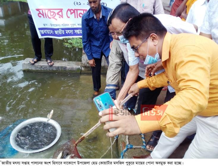 বুধবার সকাল ১০ টায় জাতীয় সংসদের হুইপ ও স্থানীয় সংসদ সদস্য পঞ্চানন বিশ্বাস ভিডিও কনফারেন্সের মাধ্যমে মাছের পোনা অবমুক্তকরন কর্মসূচীর উদ্বোধন করেন। দাকোপ উপজেলা পরিষদ হেড কোয়ার্টার জামে মসজিদের পুকুরে মাছ ছাড়ার মাধ্যমে কর্মসূচী শুরু করা হয়। এ সময় অন্যান্যের মধ্যে উপস্থিত ছিলেন উপজেলা পরিষদ চেয়ারম্যান মুনসুর আলী খান, উপজেলা নির্বাহী অফিসার আব্দুল ওয়াদুদ, উপজেলা ভাইস চেয়ারম্যান গৌরপদ বাছাড়, মহিলা ভাইস চেয়ারম্যান খাদিজা আকতার, দাকোপ উপজেলা আ’লীগের সাধারণ সম্পাদক ইউপি চেয়ারম্যান বিনয় কৃষ্ণ রায়, উপজেলা প্রকল্প বাস্তবায়ন কর্মকর্তা শেখ আব্দুল কাদের, উপজেলা সিনিয়র মৎস্য কর্মকর্তা সেলিম সুলতানসহ অন্যান্য কর্মকর্তাবৃন্দ। উল্লেখ্য প্রতিবারের ন্যায় এবারও ২১-২৭ জুলাই নানা আয়োজনে দাকোপে জাতীয় মৎস্য সপ্তাহ পালিত হচ্ছে।