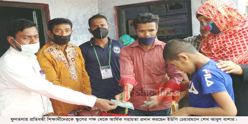 ফুলতলা (খুলনা) প্রতিনিধিঃ ফুলতলার বেজেরডাঙ্গাস্থ আমজাদ হোসেন আকুঞ্জী অটিজম ও প্রতিবন্ধী বিদ্যালয়ের অসহায় শিক্ষার্থীদেরকে শনিবার সকাল ১০টায় আর্থিক সহায়তা প্রদান করা হয়। আমজাদ হোসেন আকুঞ্জীর সভাপতিত্বে অনুষ্ঠানে প্রধান অতিথি ছিলেন ফুলতলা ইউপি চেয়ারম্যান শেখ আবুল বাশার। প্রধান শিক্ষক মোঃ মাহমুদ হোসেন আকুঞ্জীর পরিচালনায় বিশেষ অতিথি ছিলেন উপজেলা প্রেসক্লাব সভাপতি শামসুল আলম খোকন, মানুষের কল্যাণে আমরা সংগঠনের সভাপতি মোঃ আরমান হাসান মোল্যা, ইউপি সদস্য মোঃ বকতিয়ার শেখ। এ সময় অর্থশতাধিক অসহায় শিক্ষার্থীদেরকে আর্থিক সহায়তা প্রদান করা হয়।