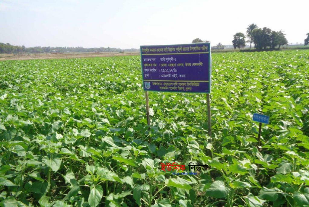ইমতিয়াজ উদ্দিন, কয়রা(খুলনা): কয়রায় লবন সহিঞ্চু সুর্যমুখী চাষ করে ভাল ফলন পাবে বলে আশাবাদি কৃষকরা। সুর্যমুখী চাষ করে পরিচর্যায় এখন মাঠে অধিক ব্যস্ত কৃষকরা। ভাল ফলন পাবে এই আশায় বেশ খুশি বলে অভিমত ব্যক্ত করেছে তারা। সরেজমিনে দেখা গেছে, বাংলাদেশ কৃষি গবেষণা ইনস্টিটিউট, সরেজমিন গবেষণা বিভাগ, দৌলতপুর খুলনার আওতাধীন এম এল টি সাইট কয়রায় লবন সহিষ্ণু ফসলের উপযোগীতা যাচাইয়ের লক্ষ্যে কয়রা উপজেলার উত্তর বেদকাশী ইউনিয়নে বিভিন্ন ধরনের ফসলের জাতের উপর গবেষণা কার্যক্রম হাতে নিয়েছে।এর মধ্যে বার্লি, ধনিয়া, মৌরি, গম, সুর্যমুখি, ভুট্রা, সরিষা, মরিচ ও আলু। আর গবেষনার মাধ্যমে ইতিমধ্যে এসব ফসলের বিভিন্ন জাত লাগানো হয়েছে। সরেজমিন গবেষনা বিভাগের বৈজ্ঞানিক সহকারি মোঃ জাহিদ হাসান বলেন, গত ২৮ নভেম্বর থেকে ২১ ডিসেম্বর পর্যন্ত লাগানো এ সব ফসলের ভিতরে বারি বার্লি-৭, বারি গম ২৫, বারি হাইব্রিড ভুট্রা-১২, বারি ধনিয়া-২, বারি মৌরি-২ বারি সুর্যমুখী-২, বারি সরিষা-১৫, বারি আলু-৭২ জাতের ফসল খুবই ভালো হয়েছে। এবং এগুলো লবন সহিষ্ণু জাত হিসাবে চাষ করলে দক্ষিন অঞ্চলে এক ফসলী জমি দু ফসলী হয়ে যাবে এ লক্ষেই তারা কাজ করছে। উত্তর বেদকাশি ইউনিয়নের কৃষক শাহিদুল ইসলাম বলেন, আমন মৌসুনে ধান লাগানোর পর তাদের জমিগুলো পড়ে থাকতো। কৃষি গবেষনার মাধ্যমে তারা দুইটি মাত্র সেচ দিয়ে বিভিন্ন ধরনের ফসল ফলাতে পেরেছে। ভাল ফসল দেখে তারা খুবই আনন্দিত। তিনি আরও বলেন,কৃষি গবেষনার মাধ্যমে সুর্যমুখী ও বার্লি চাষের প্রশিক্ষন পেয়েছি। প্রশিক্ষন পেয়ে আমরা খুবই উপকৃত হয়েছি। বার্লির অনেক পুষ্ঠিগুন সম্পর্কে জানতে পেরেছি। অপর দিকে স্থানীয় কৃষক মোঃ সুলাইমান হোসেন বলেন চলতি বছর বারি আলু ৭২ চাষ করে বিঘা প্রতি আমরা ৮০/৮৫ মন আলু পেয়েছি। সরেজমিন গবেষনা বিভাগের মাধ্যমে আলু চাষের উপর প্রশিক্ষন পেয়ে তা অনুকরন করে এ ভাল ফসল উৎপাদন করে পেরেছে বলে তিনি জানান। তার মতে আরো এ ধরনের প্রশিক্ষনের ব্যবস্থা করলে তারা খুবই উপকৃত হবে বলে মনে করেন। সরেজমিন গবেষনা বিভাগের এম,এলটি সাইটে দায়িত্বরত বৈজ্ঞানিক সহকারি মোঃ জাহিদ হাসান বলেন,বারি আলু ৭২ তাপও লবন সহিষ্ণু একটি জাত। তিনি নিয়মিত ফিল্ড পরিদর্শন করে লবনের ডাটা সংগ্রহ করে সকল ধরনের পরামর্শ দিয়ে কৃষকদের ফসল উৎপাদনে সহযোগিতা করে যাচ্ছি। তবে স্থানীয় কৃষকদের আগ্রহ দেখে তিনি আরও উৎসাহিত হয়ে পড়ছে। স্থানীয় কৃষকরা কয়রার সকল এলাকায় এ ধরনের প্রকল্প বাস্তবায়নের দাবি জানিয়েছে। সরেজমিন গবেষনা বিভাগ খুলনার প্রধান বৈজ্ঞানিক কর্মকর্তা ড. হারুন-অর রশিদ বলেন,লবন প্রবন এলাকা কয়রার কৃষকদের লবন সহিঞ্চু ফসল উৎপাদন করতে তার বিভাগ থেকে সর্বাত্মক সহযোগিতা করা হচ্ছে। তি