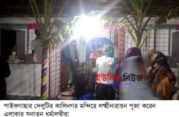 পাইকগাছা : পাইকগাছায় মঙ্গলঘট স্থাপন, প্রসাদ বিতরণ, ধর্মীয় আলোচনা ও যাত্রাপালার মধ্যদিয়ে শ্রীশ্রী লক্ষ্মীনারায়ণ পূজা অনুষ্ঠিত হয়েছে। দেলুটি ইউপি’র কালিনগর কলেজ সংলগ্ন কালিনগর সার্বজনীন শ্রীশ্রী লক্ষ্মীনারায়ণ পূজা মন্দিরে বৃহস্পতিবার বিকাল ৫টায় ধর্মীয় আলোচনা, সন্ধ্যায় মঙ্গলঘট স্থাপন এরপর রামায়ণ পালা, রাত ৮টায় প্রসাদ বিতরণ ও সবশেষে রাত ১০ টায় সামাজিক যাত্রাপালা অনুষ্ঠিত হয়। মন্দির ও পূজা উদযাপন কমিটির সভাপতি সাবেক ইউপি চেয়ারম্যান সমার কান্তি হালদারের সভাপতিত্বে লক্ষ্মীনারায়ণ পূজা অনুষ্ঠানে অন্যান্যের মধ্যে উপস্থিত ছিলেন, প্রধান শিক্ষক নিত্যানন্দ মন্ডল, পরিমল সরকার, দীলিপ রায়, প্রভাষক সুভাষ চন্দ্র গাইন, ঝর্ণা তরফদার, ঢেউ সোসাইটির চেয়ারম্যান সুকান্তি সরকার, দারুণ মল্লিক হাইস্কুলের সভাপতি পলাশ কান্তি রায়, মন্দির কমিটির সাধারণ সম্পাদক শিউলী মল্লিক, ডাঃ প্রভাত হালদার, প্রদীপ হীরা, অর্চনা রায়, তপতি মন্ডল, তানিয়া হালদার ও সুপ্রিয়া মন্ডল।