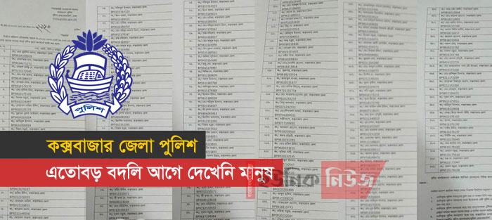বৃহস্পতিবার (২৪ সেপ্টেম্বর) কক্সবাজার জেলার সব পুলিশ পরিদর্শককে (৩৪ জন) একযোগে বদলির পর থেকেই গুঞ্জন চলতে থাকে এবার কনস্টেবল পর্যায়ে বড়সড় বদলি করা হবে। ঠিকই একই দিন পুলিশ হেডকোয়ার্টারের এক আদেশে কক্সবাজার জেলায় কর্মরত একহাজার ১৪১ জন পুলিশের কনস্টেবলকে বিভিন্ন জায়গায় বদলি করা হয়েছে।