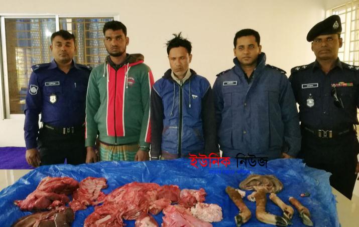 কয়রা থানার এসআই কামরুল ইসলাম জানান, গোপন খবরের ভিত্তিতে স্থানীয় দক্ষিণ বেদকাশির জোড়শিং গ্রামে অভিযান চালানো হয়। এ সময় বেড়িবাঁধের পাশে একটি ঘরে সুন্দরবন থেকে শিকার করে আনা হরিণ জবাই করে মাংস কাটা হচ্ছিল। ঘটনাস্থল থেকে ২০ কেজি হরিণের মাংসসহ দুই চোরা শিকারীকে আটক করা হয়। আটককৃতরা হচ্ছে জোড়শিং গ্রামের নূর মোহাম্মদ গাজীর ছেলে হুমায়ূন কবির হুদা (৪০) ও ৬নং কয়রা গ্রামের আমান উল্লাহ’র ছেলে খোকন মোল্লা (৪৮)।