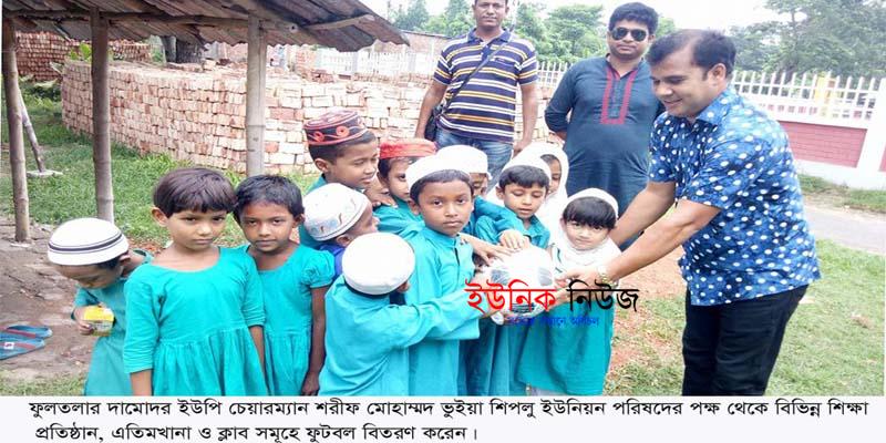ফুলতলার দামোদর ইউপি চেয়ারম্যানের উদ্যোগে শিক্ষা প্রতিষ্ঠানে ফুটবল বিতরণ