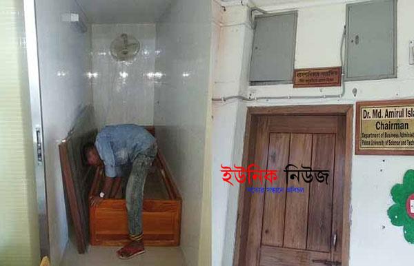 ঢাকা অফিস : পাবনা বিজ্ঞান ও প্রযুক্তি বিশ্ববিদ্যালয়ের ব্যবসায় প্রশাসন বিভাগের সভাপতির কক্ষে গোপন খাস কামরার সন্ধান মিলেছে। বিশ্ববিদ্যালয়ের একটি বিভাগের সভাপতির কক্ষে গোপন কামরা থাকায় বিক্ষোভ করেছেন বিশ্ববিদ্যালয়টির শিক্ষার্থীরা। নারী শিক্ষার্থীদের ওপর যৌন নির্যাতনের অভিযোগ তুলে বিক্ষোভ করেন শিক্ষার্থীরা। পরে, বিশ্ববিদ্যালয় প্রশাসন ওই কামরার খাটসহ আসবাবপত্র বের করে দেয়।