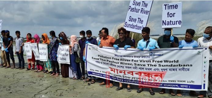 মানববন্ধনে বক্তারা বলেন, অপরিকল্পিত শিল্পায়ন ও চিংড়ি চাষের ফলে উপকূলীয় অঞ্চলে প্রবাহমান নদী-খাল দখল হচ্ছে। এছাড়া প্লাস্টিক পণ্য, জাহাজী বর্জ্য, তেল-কয়লা-সার ইত্যাদির মাধ্যমে প্রতিনিয়ত পশুর ও মোংলা নদীর দূষণ ক্রমান্বয়ে বৃদ্ধি পাচ্ছে। বক্তারা দখল এবং দূষণ বন্ধে প্রয়োজনীয় ব্যবস্থা গ্রহণে প্রশাসনের কাছে জোর দাবী জানান।