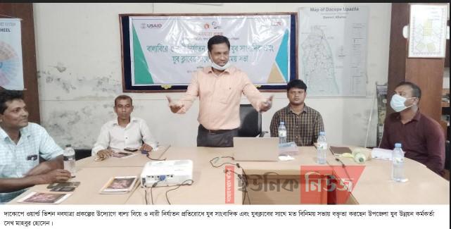 বৃহস্পতিবার দাকোপে ওয়ার্ল্ড ভিশন নবযাত্রা প্রকল্পের ফিল্ড অফিস কার্যালয়ে সকাল ৯ টায় শুরু হয়ে দু’টি পর্বে দিন ব্যাপী সভাটি চলে। নবযাত্রার ইউএসএআইডির খাদ্য নিরাপত্তা সহনশীল কার্যক্রমের আওতায় অনুষ্ঠিত সভায় প্রধান আলোচক ছিলেন উপজেলা যুব উন্নয়ন কর্মকর্তা সেখ মাহবুর হোসেন। আলোচনা করেন দাকোপ প্রেসক্লাবের সাবেক সাধারণ সম্পাদক আজগর হোসেন ছাব্বির, সাংবাদিক গাজী আবুল বাশার, এস এম মামুনুর রশিদ, শিক্ষক ও যুবক্লাব প্রতিনিধি মুরারী মোহন থান্দার, শিবপদ সরকার, যুব সাংবাদিক পাপ্পু সাহা, আলাল মীর্জা, শিউলি রায়, প্রান্ত রায়, গোবিন্দ গোলদার, অসিত মৃধা, সজীব ব্যানার্জী, দেবাশিষ মন্ডল, দেবব্রত মন্ডল, আল আমিন আলম, আনন্দ নাথ সাহা, কামরুল ইসলাম প্রমুখ। সভার দ্বিতীয় পর্বে ঢাকা থেকে থেকে আগত চ্যানেল আইয়ের অনলাইন রিপোর্টার জাহিদ রহমান, দৈনিক ইত্তেফাকের সিনিয়র রিপোর্টার সাইদুর রহমান, সমকালের জাহিদুর রহমান এবং দ্যা বিজনেস স্ট্যান্ডার্ডের এম ডি ফয়সাল আহমেদ যুব সাংবাদিক এবং যুব ক্লাবের সদস্যদের মান উন্নয়নের লক্ষ্যে তাদের উদ্দেশ্যে বিশেষ আলোচনা করেন। এ সময় অন্যান্যের মধ্যে আলোচনা করেন সিনিয়র ম্যানেজার পলিসি এন্ড এডভোকেসী এম এম মনজুর রশিদ, এমসিএইচ ম্যানেজার ড. মোস্তাক, নবযাত্রা প্রকল্পের ফিল্ড ম্যানেজার আজিজুল হক। সমগ্র অনুষ্ঠানটি পরিচালনা করেন নবযাত্রা প্রকল্পের এসআইএস স্টিফেন হেমবরম।