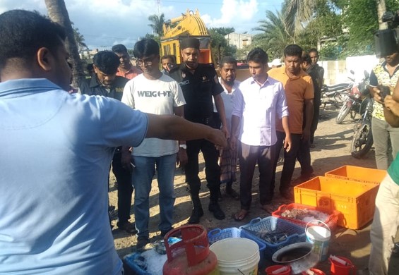 খুলনা অফিস : খুলনার ডুমুরিয়ায় একটি চিংড়ি ডিপোতে গত বুধবার বিকেল ৪টায় ভ্রাম্যমান আদালতের মাধ্যমে অভিযান পরিচালিত হয়েছে। অভিযানে ওই ডিপো থেকে লক্ষাধিক টাকার পুশকৃত চিংড়ি উদ্ধার ও পুশের সরঞ্জাম জব্দসহ ৩জনের বিরুদ্ধে আইনগত ব্যবস্থা গ্রহন করা হয়েছে। অভিযান সুত্রে জানা গেছে, উপজেলা সদরের মুক্তিযোদ্ধা মোড় সংলগ্ন পাশের গলির ভিতরেই রয়েছে মোস্তাফা বিশ্বাসের চিংড়ি ডিপো। যা মুক্তা ফিস নামে পরিচিত। গত বুধবার বিকেলে ওই ডিপো’র ম্যানেজার আব্দুল লতিফ বিশ্বাস ও ২জন নারী শ্রমিক মিলে গলদা চিংড়িতে নিষিদ্ধ জেলি পুশ করছিল। খবর পেয়ে খুলনা র‌্যাব ৬ এর ভারপ্রাপ্ত কম্পোনী কমান্ডার লেফটেন্যান্ট আবুল কালাম আজাদ ও ডিএডি আমিনুর রহমান মল্লিকের নেতৃত্বে ওই ডিপোতে অভিযান শুরু হয়। অভিযানে প্রায় দেড়’শ কেজি গলদা চিংড়ি উদ্ধার হয়। যার আনুমানিক মূল্য ১লাখ ২০হাজার টাকা। এছাড়াও চিংড়িতে পুশের সরঞ্জাম হিসেবে গ্যাস সিলিন্ডার ও চুলা, নিষিদ্ধ জেলি, বিভিন্ন সাইজের ৮/১০টি ইনজেকশানের সিরিঞ্জ জব্দ করা হয়। অভিযান শেষে ডুমুরিয়া উপজেলা সহকারি কমিশনার (ভুমি) ও এক্সিকিউটিভ ম্যাজিষ্ট্রেট মামুনুর রশীদের নেতৃত্বে ভ্রাম্যমান আদালত পরিচালিত হয়। বিজ্ঞ আদালত দীর্ঘ শুনানি শেষে জব্দকৃত সমুদয় চিংড়ি ও পুশের সকল সরঞ্জাম বিনিষ্ট পূর্বক তা মাটির নিচে পুতে রাখার নির্দেশ প্রদান করেন এবং ভোক্তা অধিকার আইনের ২০০৯ সালের ধারামতে অভিযুক্ত ২ নারী শ্রমিকের নিকট থেকে ৫’শ করে মোট মোট ১হাজার টাকা জরিমানা আদায় করেন। আর ডিপো ম্যানেজার আব্দুল লতিফ বিশ্বাসকে ৩দিনের বিনাশ্রম কারাদন্ডাদেশ দেন। আদালত পরিচালনায় সহযোগিতা করেন সিনিয়র উপজেলা মৎস্য অফিসার আবুবকর সিদ্দিক। তবে অভিযান চলাকালে ডিপোমালিক মোস্তফা বিশ্বাস গা ঢাকা দিয়ে আত্মগোপনে ছিলেন বলে আদালত সুত্রে জানা গেছে।