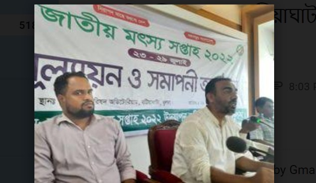 বটিয়াঘাটা প্রতিনিধি : বটিয়াঘাটা মৎস্য অধিদপ্তরের আয়োজনে জাতীয় মৎস্য সপ্তাহ ২০২১ উদযাপন এর মূল্যায়ন ও সমাপনী অনুষ্ঠান শুক্রবার বেলা ১১ টায় স্থানীয় সম্মেলন কক্ষে উপজেলা সিনিয়র মৎস্য অফিসার মোঃ মনিরুল মামুন’র সভাপতিত্বে অনুষ্ঠিত হয়। সভায় প্রধান অতিথি ছিলেন ভাইস চেয়ারম্যান নিতাই গাইন। উপস্থিত ছিলেন মৎস্য সম্প্রসারণ কর্মকর্তা বাবুল হুসাইন, সহকারী মৎস্য অফিসার আমীর আলী, উপজেলা প্রেসক্লাবের সভাপতি প্রতাপ ঘোষ, সাধারণ সম্পাদক ইন্দ্রজিৎ টিকাদার, উত্তরনের ম্যানেজার কামাল হোসেন সহ অসংখ্য মৎস্য চাষী। পরে উত্তরনের আয়োজনে প্রান্তিক মৎস্য চাষী ও জেলেদের মাঝে নগদ ৯ শত টাকা করে প্রণোদনা অনুষ্ঠান অনুষ্ঠিত হয়।