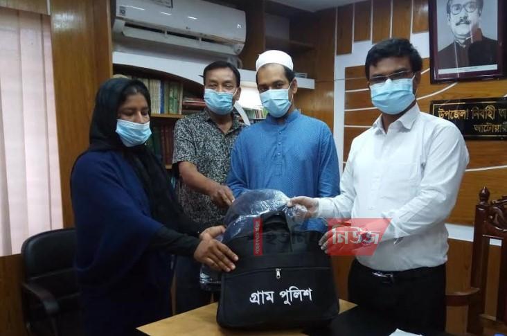 মনোজ রায় হিরু, আটোয়ারী : পঞ্চগড়ের আটোয়ারী উপজেলাধীন ৬ ইউনিয়ন পরিষদের আওতায় গ্রাম পুলিশ সদস্যদের মাঝে নতুন পোশাক ও ব্যাগ বিতরণ করা হয়েছে। বৃহস্পতিবার (৩০ জুলাই) বিকেলে উপজেলা নির্বাহী অফিসার আবু তাহের মো: সামসুজ্জামান তার কার্যালয়ে গ্রাম পুলিশ সদস্যদের হাতে পোশাক ও ব্যাগ তুলে দেন। এসময় উপজেলা প্রকল্প বাস্তবায়ন কর্মকর্তা মো: ওয়ালিফ মন্ডল সহ স্থানীয় সংবাদকর্মীরা উপস্থিত ছিলেন। উল্লেখ্য, উপজেলার ৬ ইউনিয়নের ৬০ জন সদস্যের মাঝে বিতরণ পোশাক ও ব্যাগ বিতরণ করা হয়।