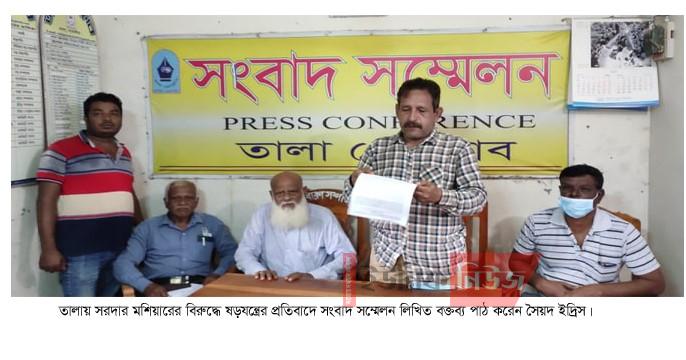 সংবাদ সম্মেলনে লিখিত বক্তব্যে তিনি বলেন, তালা উপজেলা পরিষদের নির্বাচিত ভাইস চেয়ারম্যান ও প্রেসক্লাবের সাধারণ সম্পাদক সরদার মশিয়ার রহমান জেয়ালা নলতা গ্রামের সন্নিকটে নলবুনিয়া বিলে ১২০ বিঘা জমিতে একটি মাছের ঘের পরিচালনা করে আসছে। উক্ত ঘেরে বিগত ১৭ আগষ্ট দিবাগত রাতে জেয়ালা নলতা গ্রামের নিকারীপাড়ার লুৎফর রহমান নিকারীর পুত্র সেলিম নিকারীসহ ১০/১২ জন একসাথে মিলে মাছ লুট করার উদ্দেশ্যে অবৈধভাবে ঘেরে মাছ ধরতে থাকে। একপর্যায়ে ঘেরের পার্শ্ববর্তী বাসার পাহারাদাররা জানতে পেরে ডাক চিৎকার করতে থাকলে আসামীগণ উক্ত ঘের হতে বিভিন্ন প্রজাতির মৎস্যাদি ও ঘেরের মেইন বাসা হতে অন্যান্য মালামালসহ নগদ টাকা নিয়ে চলে যায়। সেলিম নিকারী উক্ত ঘেরে মাছ লুট করতে গিয়ে ধরা পড়েছে এমন খবর শুনে তার পিতা লুৎফর রহমান নিকারী ঐ রাতে হন্তদন্ত হয়ে ঘেরের দিকে আসার পথে হঠাৎ অসুস্থ হয়ে রাস্তার উপর পড়ে যান। তাৎক্ষনিকভাবে তাকে নিয়ে হাসপাতালে নেয়া হলে কর্তব্যরত চিকিৎসক তাকে মৃত্যু ঘোষণা করেন। যতদূর জানা যায়, মৃত লুৎফর রহমানের হার্টের অসুখ ছিল এবং নিয়মিত হার্টের ওষুধ গ্রহণ করতেন।