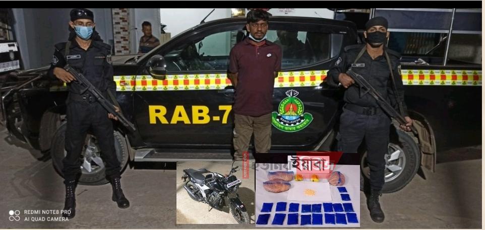 শুক্রবার (৩০ অক্টোবর) র্যাব-৭ সূত্রে জানা যায়, গোপন সংবাদের মাধ্যমে জানতে পারে যে, কতিপয় মাদক ব্যবসায়ী একটি মোটরসাইকেল যোগে বিপুল পরিমান মাদকদ্রব্য নিয়ে কক্সবাজার হতে চট্টগ্রামের দিকে আসছে। উক্ত সংবাদের ভিত্তিতে বৃহস্পতিবার (২৯ অক্টোবর) চট্টগ্রাম মহানগরীর কর্ণফুলী থানাধীন শিকলবাহা ক্রসিং এলাকার ওয়াই জংশন এর পাশে আব্দুল হামিদ মার্কেটে মের্সাস এনএস মটরস দোকানের সামনে একটি বিশেষ চেকপোস্ট স্থাপন করে গাড়ি তল্লাশি শুরু করে।