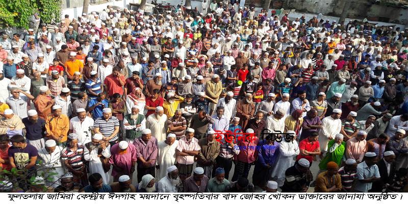 ফুলতলা (খুলনা) প্রতিনিধি: ফুলতলার জামিরা বাজার বিশিষ্ট চিকিৎসক আলহাজ¦ গোলাম মোস্তফা ওরফে খোকন ডাক্তারের জানাযার নামাজ বৃহস্পতিবার বাদ জোহর জামিরা বাজার কেন্দ্রীয় ঈদগাহ ময়দানে অনুষ্ঠিত এবং পরে টোলনাস্থ পারিবারিক গোরস্থানে দাফন সম্পন্ন হয়। হাফেজ আমিনুল ইসলামের পরিচালনায় অন্যান্যের মধ্যে উপস্থিত ছিলেন উপজেলা পরিষদের ভাইস চেয়ারম্যান গাউসুল আযম হাদী, ইউপি চেয়ারম্যান মাওলানা সাইফুল হাসান খান, আওয়ামীলীগ নেতা বিএম এ সালাম, নওয়াপাড়া কলেজ অধ্যক্ষ রবিউল হাসান, জামিরা স্কুল এন্ড কলেজ অধ্যক্ষ গাজী মারুফুল কবির, অধ্যক্ষ আছম আঃ রহিম, সহকারী অধ্যাপক মোঃ নেছার উদ্দিন, উপজেলা প্রেসক্লাব সভাপতি শামসুল আলম, শেখ নজরুল ইসলাম, শেখ ইকবাল হোসেন, শাহাদাত বিস, সরদার আলাউদ্দিন, প্রধান শিক্ষক পীর মোহাম্মাদ বিশ্বাস, শেখ লুৎফর রহমান, আলহাজ্ হারুন অর রশিদ, শওকত আলী আকুঞ্জী, দলিল উদ্দিন মোল্যা, ইউপি সদস্য শেখ গোলাম কিবরিয়া, শেখ আঃ কুদ্দুস, ডাঃ ইছহাক বিশ্বাস, নুরুল হক মোল্যা, প্রভাষক আঃ রহিম, আবুল কাশেম মোড়ল, শিক্ষক গোলাম সরোয়ার মোল্যা, মুরাদ হসাইন, আশরাফুল আলম, জুলফিকার আলী, মতিয়ার বিশ্বাস, শেখ আঃ হালিম, মাসুদ সরদার প্রমুখ।