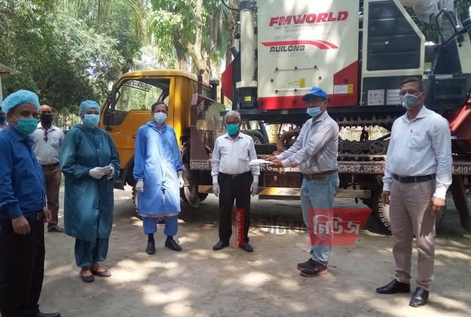 মনোজ রায় হিরু, আটোয়ারী : পঞ্চগড়ের আটোয়ারীতে কৃষি কাজে সরকারি উন্নয়ন সহায়তার আওতায় জনৈক কৃষককে অর্ধেক মুল্যে অত্যাধুনিক কম্বাইন্ড হারভেষ্টার মেশিন হস্তান্তর করা হয়েছে। উপজেলা কৃষি অফিসার কৃষিবিদ আবদুল্লাহ আল মামুনের তত্বাবধানে রবিবার (৩১মে) বিকেলে উপজেলা কৃষি বিভাগ চত্ত্বরে এক কৃষকের হাতে কম্বাইন্ড হারভেষ্টার মেশিনের চাবি হস্তান্তর করা হয়। মেশিন হস্তান্তর অনুষ্ঠানে উপস্থিত ছিলেন কৃষি সম্প্রসারন অধিদপ্তর, পঞ্চগড়ের উপ-পরিচালক মো: আবু হানিফ, আটোয়ারী উপজেলা পরিষদের চেয়ারম্যান মো: তৌহিদুল ইসলাম, বিদায়ী আটোয়ারী উপজেলা নির্বাহী অফিসার শারমিন সুলতানা ও কৃষি সম্প্রসারন অধিদপ্তর, পঞ্চগড়ের জেলা প্রশিক্ষণ অফিসার মো: আবু হোসেন। সামাজিক দূরত্ব বজায় রেখে এসময় আরও উপস্থিত ছিলেন মহিলা ভাইস চেয়ারম্যান রেনু একরাম, কৃষি সম্প্রসারন অধিদপ্তর, আটোয়ারীর অতিরিক্ত কৃষি অফিসার মোছা: নুরজাহান খাতুন, উপজেলা কৃষি সম্প্রসারন কর্মকর্তা মোস্তাক আহম্মেদ ও মানস কুমার রায়, মেটাল এগ্রোটেক লি: এর বিক্রয় প্রতিনিধি খোকন চন্দ্র মোহন্ত সহ স্থানীয় গণমাধ্যমকর্মীরা। সুত্র জানায়, প্রতিটি মেটাল এগ্রোটেক লি: এর কম্বাইন্ড হারভেষ্টার মেশিনের মূল্য একুশ লক্ষ টাকা। বর্তমান কৃষিবান্ধব সরকার অর্ধেক মূল্য ভর্তুকি দিয়ে সাড়ে দশ লক্ষ টাকায় কৃষকদের মাঝে বিতরণের উদ্যোগ নেন। উপজেলার আলোয়াখোয়া ইউনিয়নের বালিয়া এলাকার বসির আহম্মেদ খান ভর্তুকি মূল্যে মেশিনটি ক্রয় করেন। বর্তমানে কৃষিকাজে দিনমজুরের অভাব। চাষাবাদ হচ্ছে বৈজ্ঞানিক পদ্ধতিতে। এ মেশিন ব্যবহারে কৃষকদের উৎপাদন ব্যয় অনেকটা কমে আসবে। তাছাড়া এই মেশিন দিয়ে ধান-গম কাটা মারা সহ বস্তাবন্দী করা যাবে।