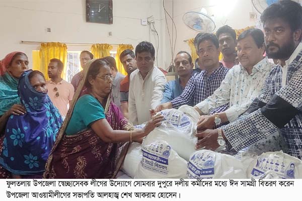 ফুলতলা (খুলনা) প্রতিনিধি// ফুলতলা উপজেলা স্বেচ্ছাসেবকলীগের উদ্যোগে সোমবার দুপুরে দলীয় কর্মীদের মাঝে ঈদ সামগ্রী বিতরণ করা হয়েছে। উপজেলা আওয়ামীলীগ কার্যালয়ে …