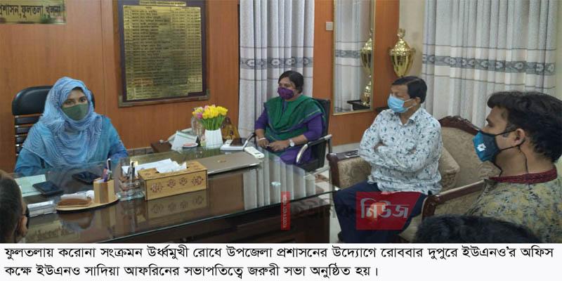 ফুলতলা (খুলনা) প্রতিনিধিঃ ফুলতলায় করোনা সংক্রমন উর্ধ্বমুখী রোধে উপজেলা প্রশাসনের উদ্যোগে রোববার দুপুরে ইউএনও’র অফিস কক্ষে এক জরুরী সভা অনুষ্ঠিত …
