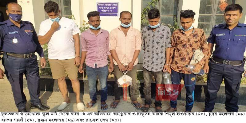 খুলনা অফিসঃ র্যাব-৬ শনিবার দিবাগত রাতে ফুলতলার গাড়াখোলা স্কুলের সামনে থেকে ৫ যুবককে আটক এবং তাদের কাছ থেকে আগ্নেয়াস্ত্র, ধারালো …