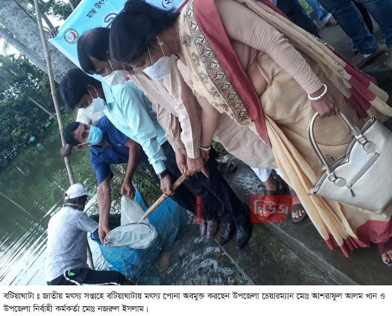 বটিয়াঘাটা প্রতিনিধি : জাতীয় মৎস্য সপ্তাহ উদ্যাপন উপলক্ষ্যে বটিয়াঘাটা উপজেলা মৎস্য অধিদপ্তরের আয়োজনে বুধবার বিকাল ৩টায় পরিষদের পুকুরে মাছের পোন …