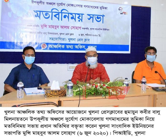 খুলনা অফিস : মহামারী করোনা বা ঘূর্ণিঝড় আম্ফানের মতো প্রাকৃতিক দুর্যোগকালে গণমাধ্যমের ভূমিকা নিয়ে এক মতবিনিময় সভা আজ (শনিবার) খুলনা প্রেসক্লাবের …