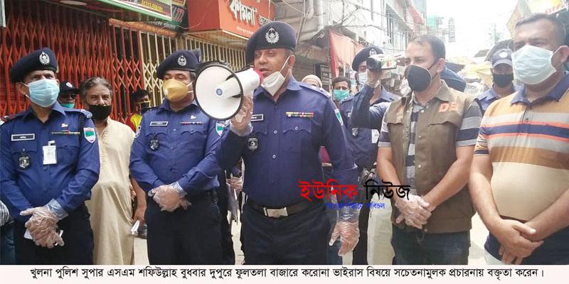 ফুলতলা (খুলনা) অফিসঃ খুলনা জেলা পুলিশ সুপার এসএম শফিউল্লাহ বলেছেন, করোনা ভাইরাস নামক মহামারী থেকে পরিত্রান পেতে নিজেদেরকে সচেতন, স্বচ্ছতার …