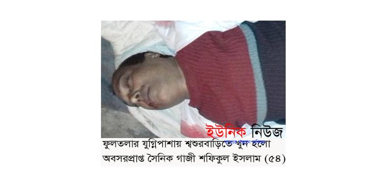 ফুলতলা (খুলনা) প্রতিনিধিঃ ফুলতলায় শ্বশুরবাড়ির লোকজনের হাতুড়ির আঘাতে বিমান বাহিনীর অবসরপ্রাপ্ত সৈনিক গাজী শফিকুল ইসলাম (৫৪) নামের এক ব্যাক্তি খুন …