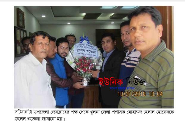 বটিয়াঘাটা প্রতিনিধিঃ খুলনা জেলা প্রশাসক ও জেলা ম্যাজিষ্ট্রেট মোহাম্মদ হেলাল হোসেনকে বটিয়াঘাটা উপজেলা প্রেসক্লাবের পক্ষ থেকে বুধবার সকাল ১০টায় তার নিজস্ব …