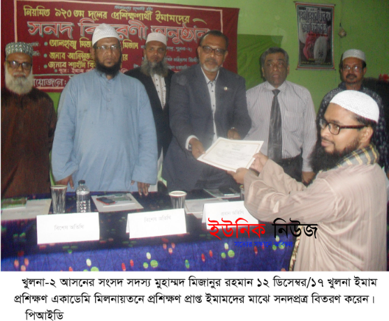 খুলনা : মহান বিজয় দিবসের তাৎপর্য শীর্ষক আলোচনা সভা ও দোয়া অনুষ্ঠান এবং ৯২০ তম দলের নিয়মিত প্রশিক্ষণপ্রাপ্ত ইমামদের সনদপত্র …