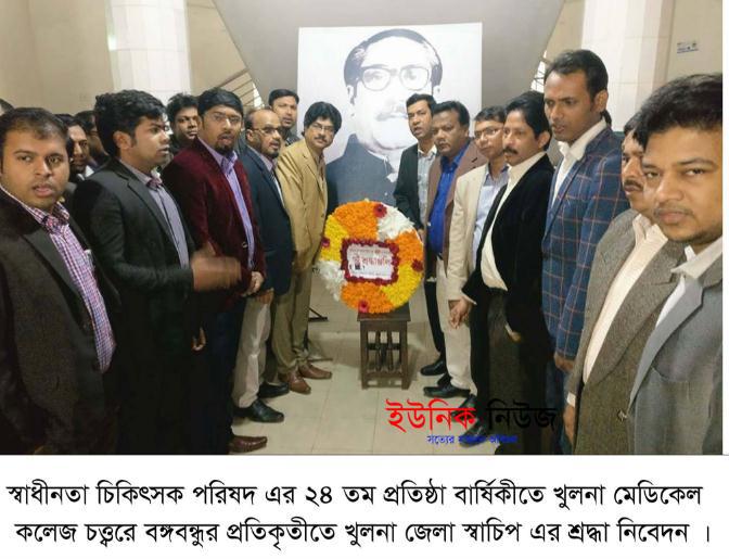 বিজ্ঞপ্তি : স্বাধিনতা চিকিৎসক পরিষদ (স্বাচিপ) এর ২৪তম প্রতিষ্ঠা বার্ষিকী উপলক্ষে খুলনা জেলা শাখা স্বাচিপের এর পক্ষ থেকে বঙ্গবন্ধুর প্রতিকৃতিতে শ্রদ্ধাঞ্জলি …