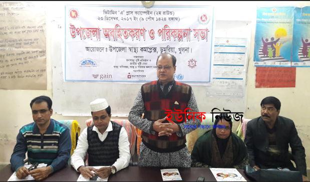 ডুমুরিয়া(খুলনা)প্রতিনিধি : ডুমুরিয়া উপজেলা স্বা¯হ্য কমপ্লেক্সের আয়োজনে ভিটামিন এ প্লাস ক্যা¤েপইন (২য়)পর্যায় উপলক্ষে উপজেলা অবহিতকরন ও পরিকল্পনা সভা অনুষ্ঠিত হয়েছে। …