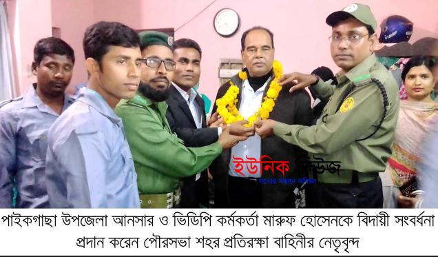 পাইকগাছা (খুলনা) প্রতিনিধি : পাইকগাছা উপজেলা আনসার ও ভিডিপি কর্মকর্তা মারুফ হোসেনকে বিদায়ী সংবর্ধনা প্রদান করা হয়েছে। মঙ্গলবার সকালে পৌরসভা …