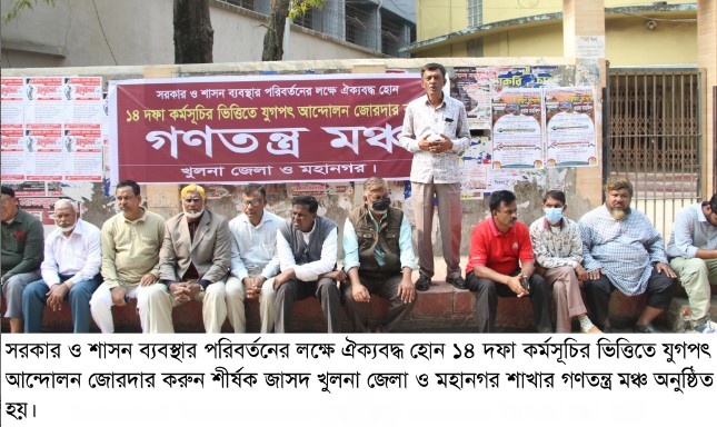 বিজ্ঞপ্তি : ভোটাধিকার প্রতিষ্ঠা, গণতান্ত্রিক শাসনব্যবস্থা প্রতিষ্ঠা, সরকারের পদত্যাগের দাবিতে এবং নিত্যপ্রয়োজনীয় দ্রব্যসামগ্রীর মূল্য বৃদ্ধি ও বিদ্যুৎ-গ্যাসের দাম বৃদ্ধির অপতৎপরতার প্রতিবাদে …