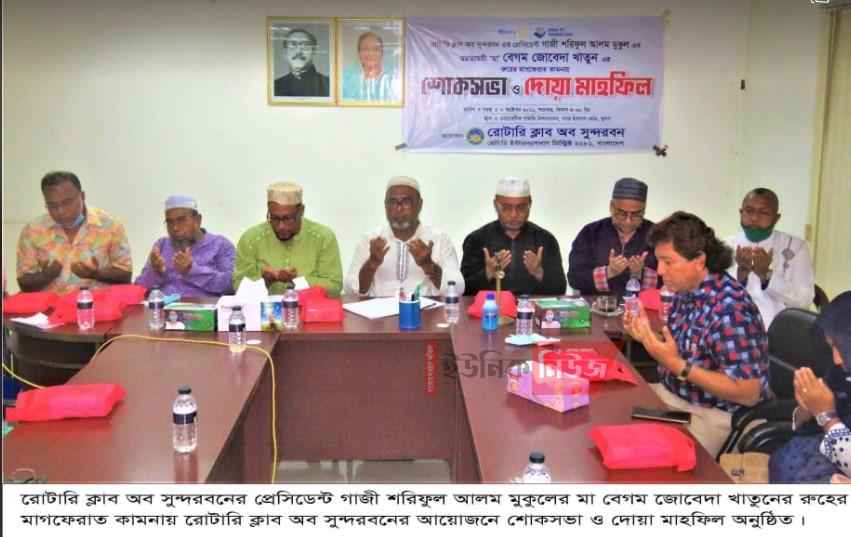 বিজ্ঞপ্তি : রোটারী ক্লাব অব সুন্দরবনের উদ্যোগে ক্লাবের প্রেসিডেন্ট গাজী শরিফুল আলম মুকুল এর মাতা বেগম জোবেদা খাতুনের শোক সভা …