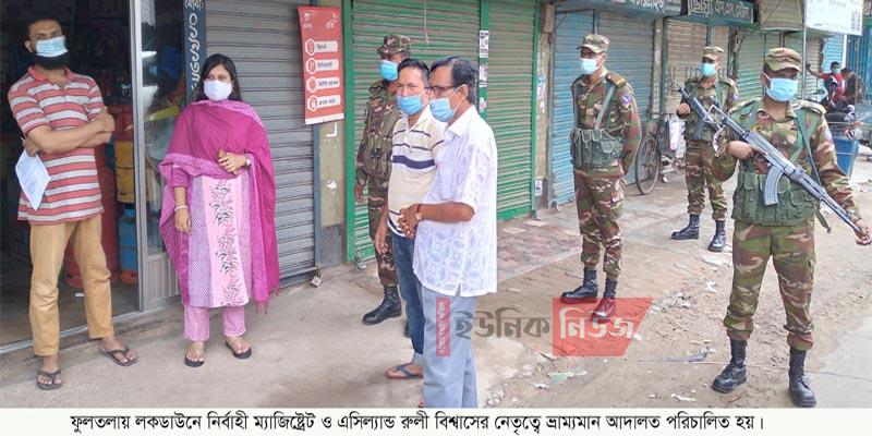 ফুলতলা (খুলনা) প্রতিনিধিঃ কঠোর লকডাউনের দ্বিতীয় দিনে শুক্রবার দুপুরে নির্বাহী ম্যাজিষ্ট্রেট ও সহকারী কমিশনার (ভূমি) রুলী বিশ^াসের নেতৃত্বে সেনাবাহিনীর সদস্যরা …