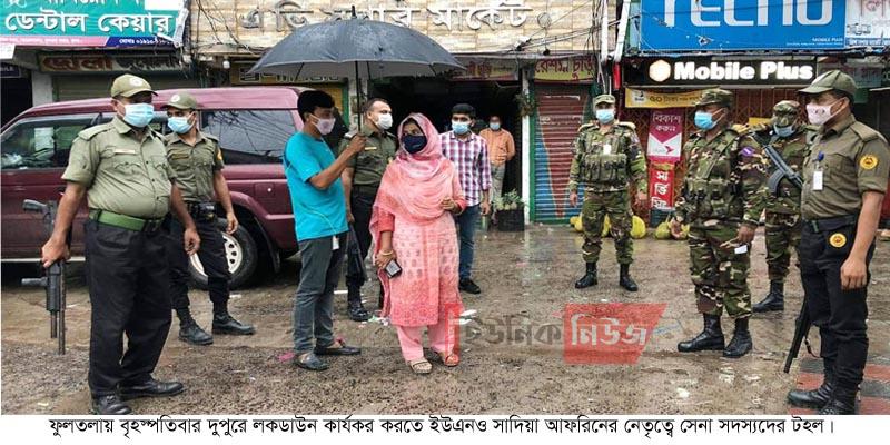 ফুলতলা (খুলনা) প্রতিনিধি// দেশব্যাপী ঘোষিত লকডাউনের প্রথম দিনে বৃহস্পতিবার দুপুরে ইউএনও সাদিয়া আফরিনের নেতৃত্বে সেনাবাহিনী ফুলতলা বাজার এলাকায় টহল দেয়। …