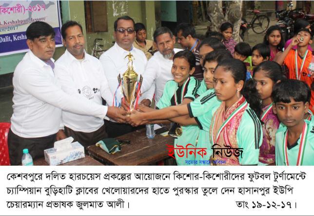 এস আর সাঈদ, কেশবপুর (যশোর) : যশোরের কেশবপুরে বুড়িহাটি হাসানপুর সরকারী প্রাথমিক বিদ্যালয় ফুটবল মাঠে মঙ্গলবার বিকালে দলিত হারচয়েস প্রকল্পের …