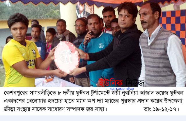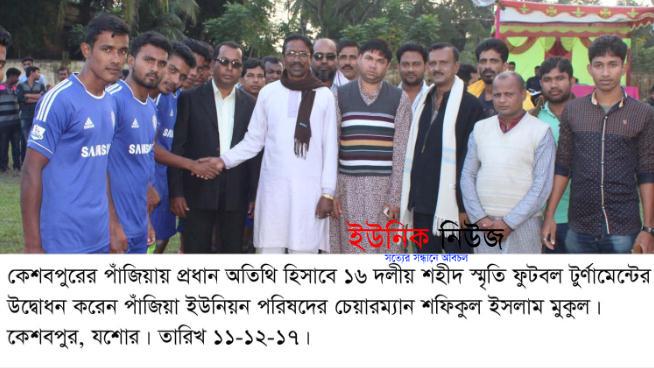 কেশবপুর (যশোর) প্রতিনিধি : যশোরের কেশবপুর উপজেলার বিদ্যান্দকাটি ইউনিয়ন পরিষদ মাঠে মঙ্গলবার বিকালে ৮ দলীয় চেয়ারম্যান কাপ ফুটবল টুর্ণামেন্টের ৩য় …