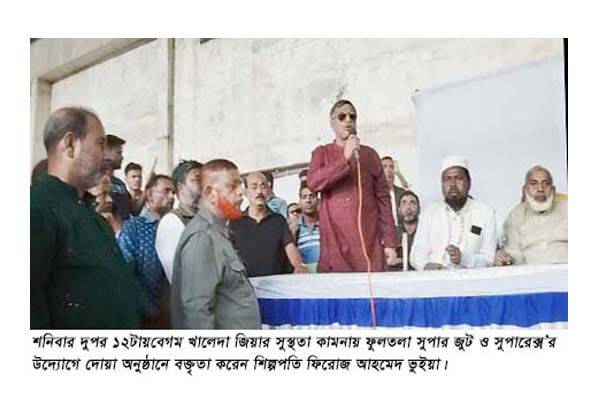 ফুলতলা (খুলনা) প্রতিনিধি// বিএনপির চেয়ারপার্সন ও দেশনেত্রী বেগম খালেদা জিয়ার আশু রোগমুক্তি কামনায় ফুলতলা সুপার জুট মিলস্ ও সুপারেক্স লেদার …