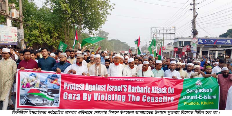 ফুলতলা (খুলনা) প্রতিনিধি// ফিলিস্তিনে দখলদার ইসরাইয়েলের অব্যাহত গণহত্যা ও নির্বিচারে হামলার প্রতিবাদে সোমবার বিকালে ফুলতলায় উপজেলা জামায়াতের উদ্যোগে এক বিক্ষোভ …