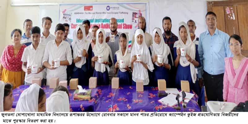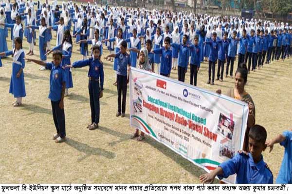 ফুলতলা (খুলনা) প্রতিনিধি// রপান্তরের আয়োজনে মানব পাচার প্রতিরোধে স্কুল পর্যায়ে প্রচারাভিযানের অংশ হিসাবে ফুলতলা রি-ইউনিয়ন স্কুল এন্ড কলেজে মঙ্গলবার সকালে …