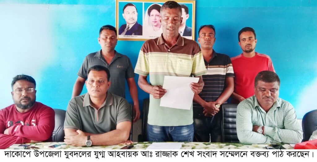 দাকোপ প্রতিনিধিঃ উড়ো চিঠিতে সন্ত্রাসী লুটপাট চাঁদাবাজ আখ্যা দেওয়ার প্রতিবাদে সংবাদ সম্মেলন করেছেন দাকোপ উপজেলা যুবদলের যুগ্ম আহবায়ক আঃ রাজ্জাক …