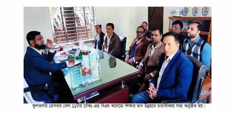 ফুলতলা (খুলনা) প্রতিনিধি// ফুলতলা উপজেলার প্রতিষ্ঠান ও শিক্ষার্থীদের লেখাপড়ার মান উন্নয়নে এক মতবিনিময় সভা রোববার বেলা ১১টায় ফুলতলা টেকনিক্যাল এন্ড …