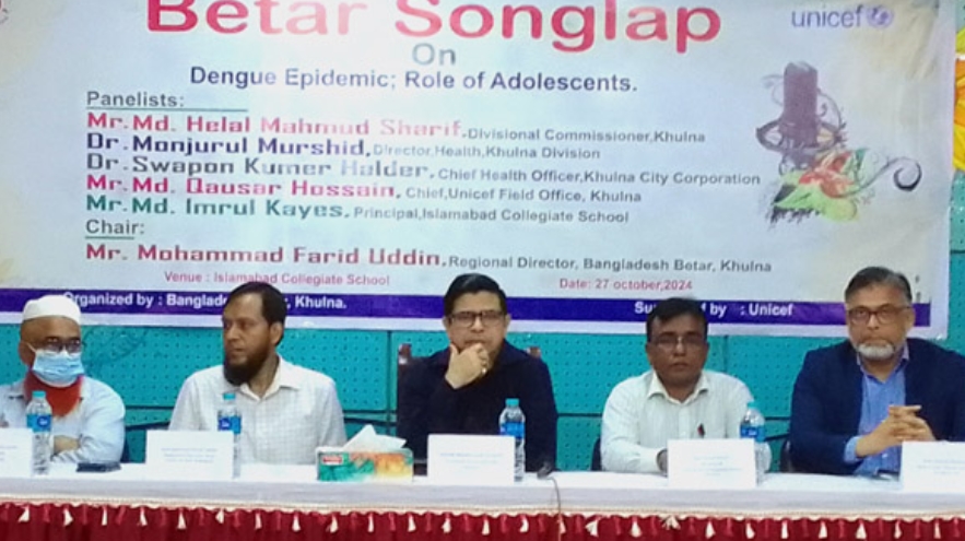 তথ্য বিবরণী : খুলনা মহানগরীর ইসলামাবাদ কলেজিয়েট স্কুল মিলনায়তনে ইউনিসেফ-এর সহযোগিতায় ‘ডেঙ্গু মোকাবেলায় কিশোর-কিশোরীদের ভূমিকা’ শীর্ষক বেতার সংলাপ অনুষ্ঠিত হয়। …