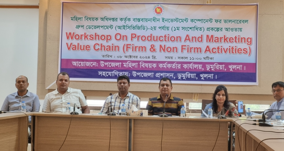 ডুমুরিয়া : মহিলা বিষয়ক অধিদপ্তর কর্তৃক বাস্তবায়নাধীন ইনভেস্টমেন্ট কম্পোনেন্ট ফর ভালনারেবল গ্রুপ ডেভেলপমেন্ট (আইসিভিজিডি)-২য় পর্যায় (১ম সংশোধিত) প্রকল্পের আওতায় Workshop …