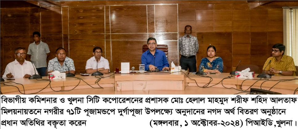 তথ্যবিবরণী : আসন্ন শারদীয় দুর্গাপূজা উপলক্ষ্যে খুলনা সিটি কর্পোরেশনের উদ্যোগে আজ মঙ্গলবার দুপুরে নগরভবনের শহিদ আলতাফ মিলনায়তনে অনুদানের অর্থ বিতরণ …